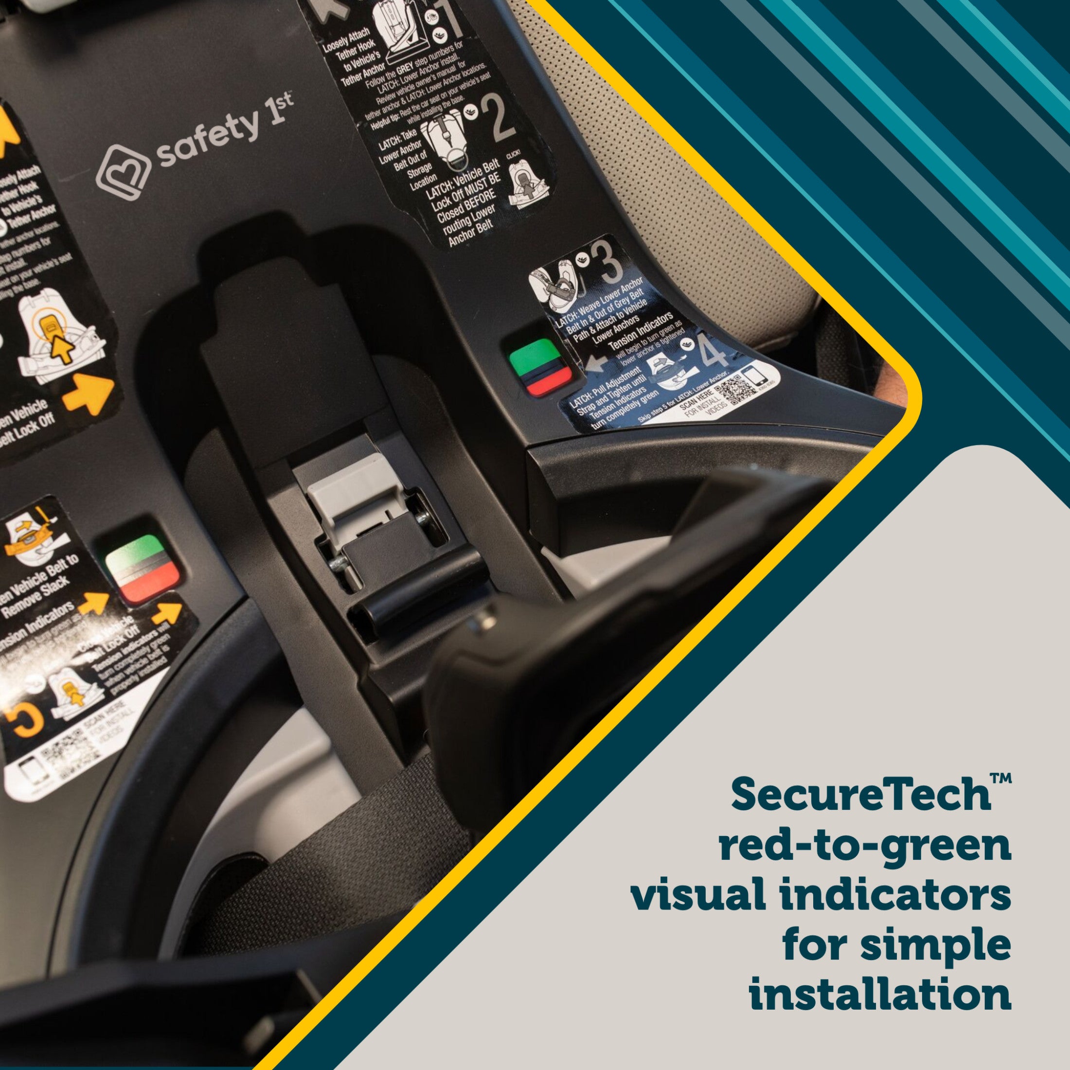 Our all-in-one carseat solves the number one installation problem that 7 out of 10 parents unknowingly have—loose belt tension. Turn and Go 360° features SecureTech™, Safety 1st’s red-to-green indicators on the seat’s base that allow you to see when your belt has tension.