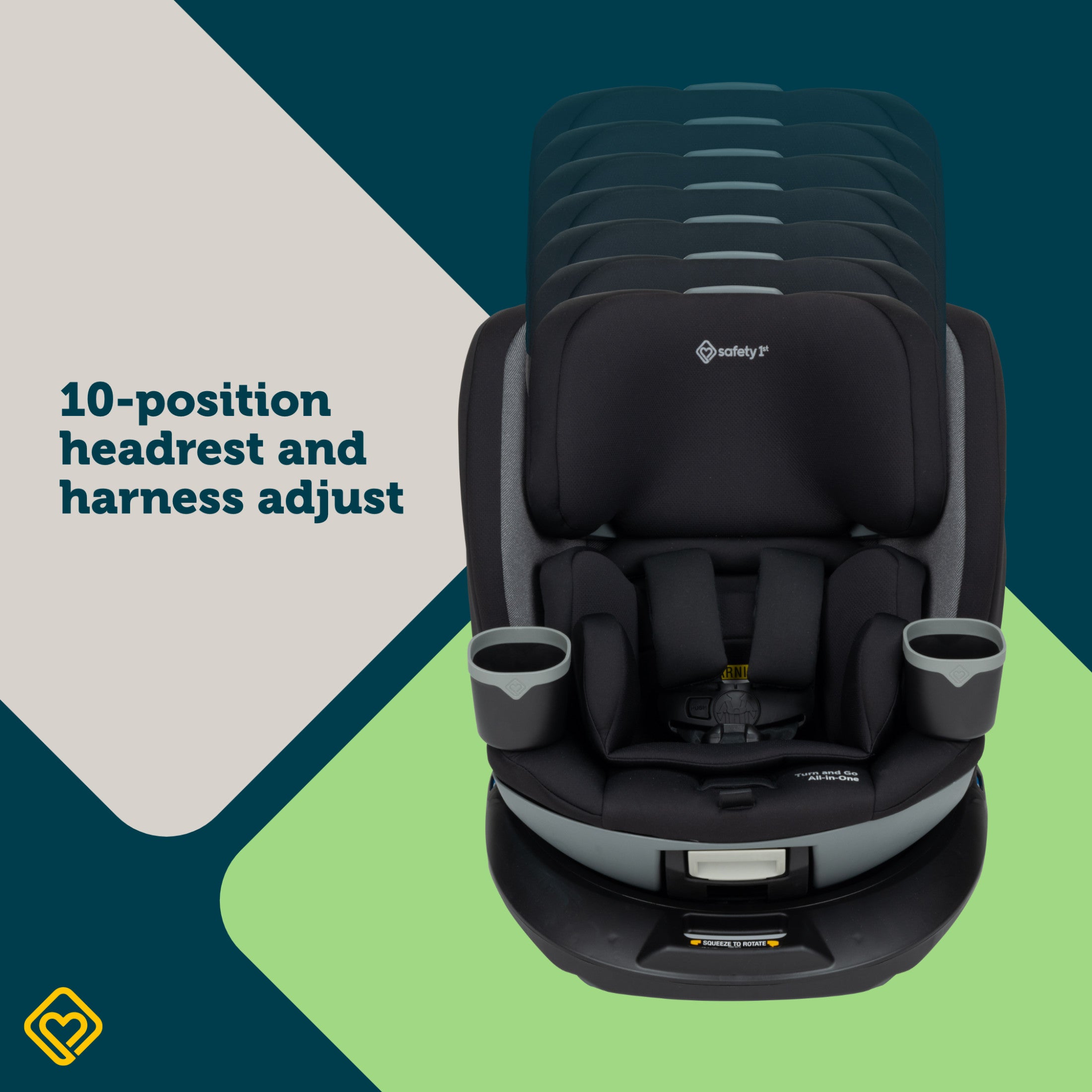 Rotation that grows with them—the Safety 1st Turn and Go 360 Rotating Car Seat rotates all the way from baby to booster. With extended use up to 100 lbs. and rotation in all three modes, the Turn and Go 360 Car Seat fits children from birth to 10 years: rear facing car seat for infants (5–40 lbs., 19"–40"), forward facing car seat for toddlers (30–65 lbs., 34.4"–49"), and belt-positioning booster car seat for big kids (40–100 lbs., 43.4"–52").