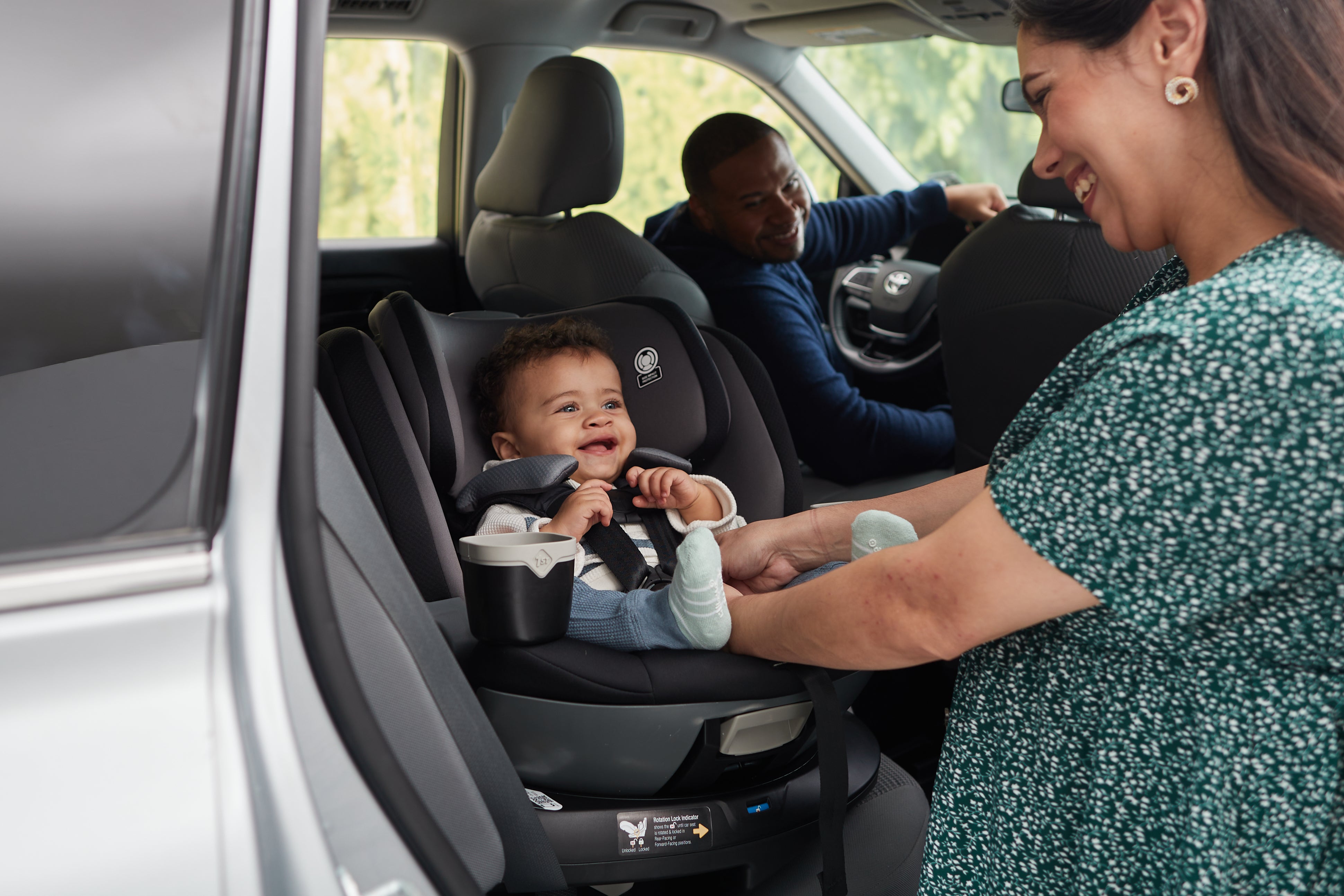 The Turn and Go 360° Rotating Convertible All-in-One Car Seat is designed with our innovative SafetySwivel™ 360° rotational technology, which lets you turn the rotating car seat toward you, bringing you face-to-face with your little one. This makes buckling and transferring your child in and out of the seat easier than ever and puts less strain on your back.