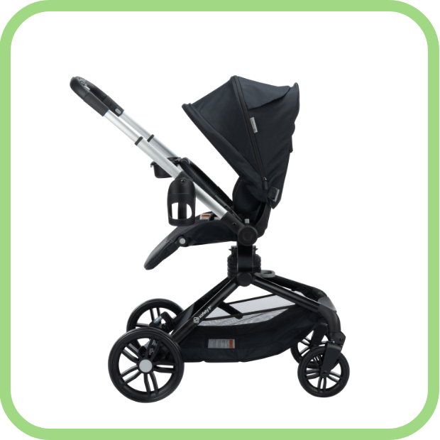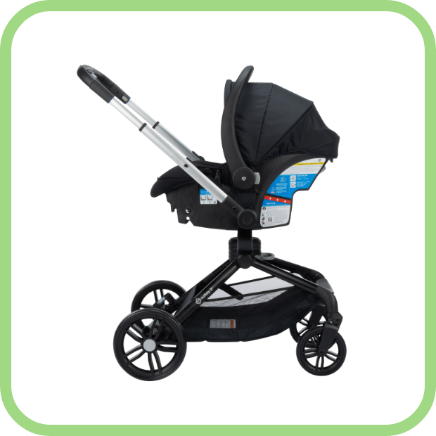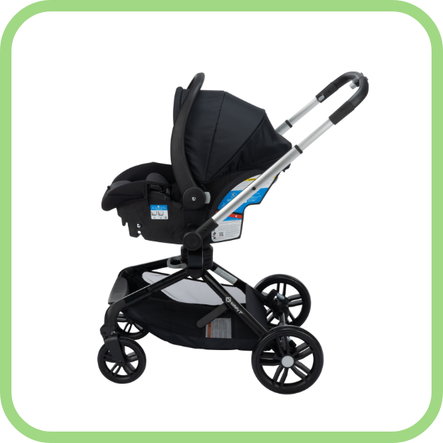 Take your little one for a spin with the Safety 1st Turn and GoTM 360° Rotating Modular Travel System. Change their view (and yours) in seconds with the 360° rotating seat. With the push of a button, effortlessly raise the handlebar to turn the seat. Now, your tiny traveler is facing the other direction, so you can keep an eye on each other or let them see the road ahead. This versatile stroller is paired with the Safety 1st onBoard™ FLX Infant Car Seat (fits babies 4–30 lbs. and up to 32") and makes going from car to stroller (and back again) quick and easy. The infant car seat is lightweight at under 8 lbs. and can also rotate 360° when attached to the stroller.
